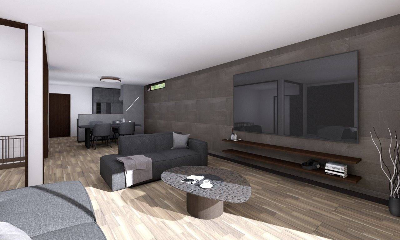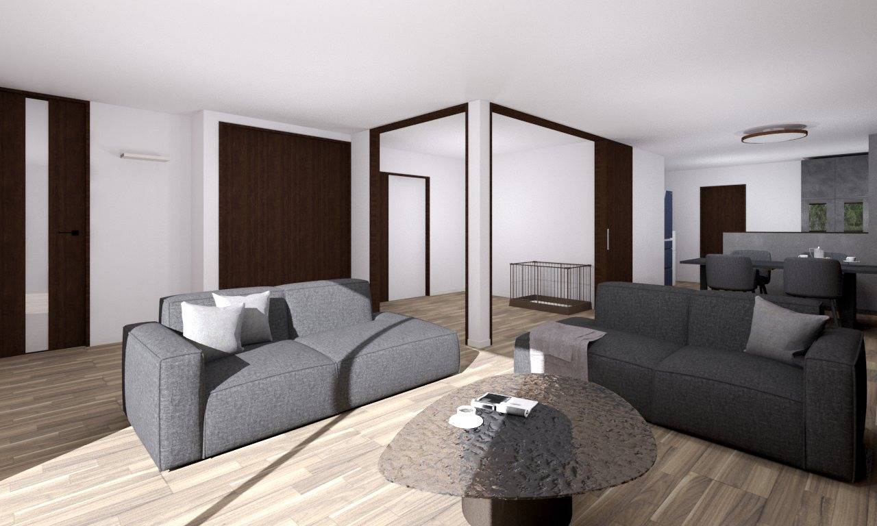 開放感を感じられる広いLDKづくりを実現。30.8帖の広さは圧迫感を全く感じない、楽に寛げる特別な空間です。リビング横の洋室はワンちゃん専用部屋として活用。ペットと共に快適に暮らすモダンなLDKです。