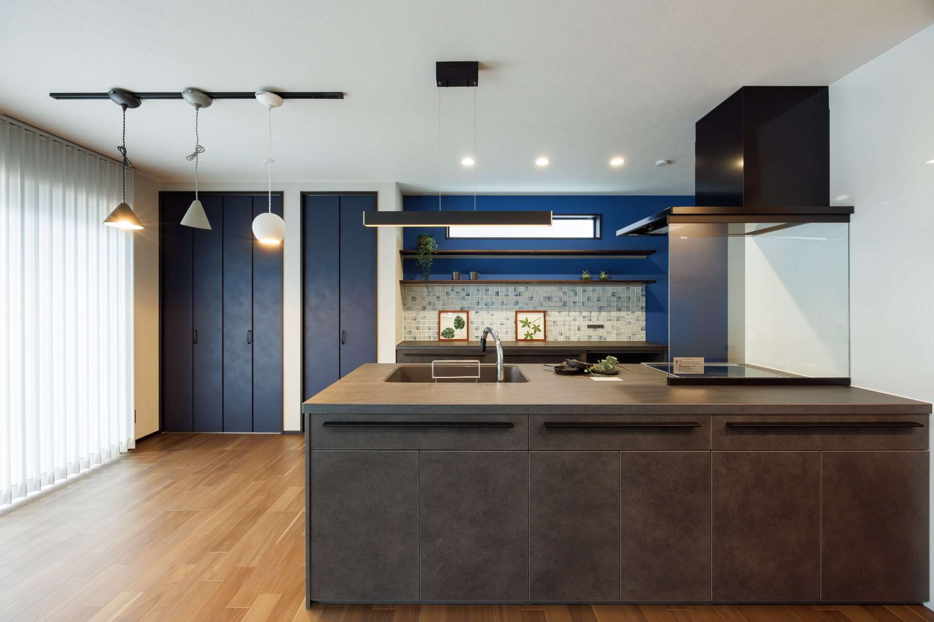 特にキッチン空間にはこだわり、様々なブルーカラーを取り入れて、