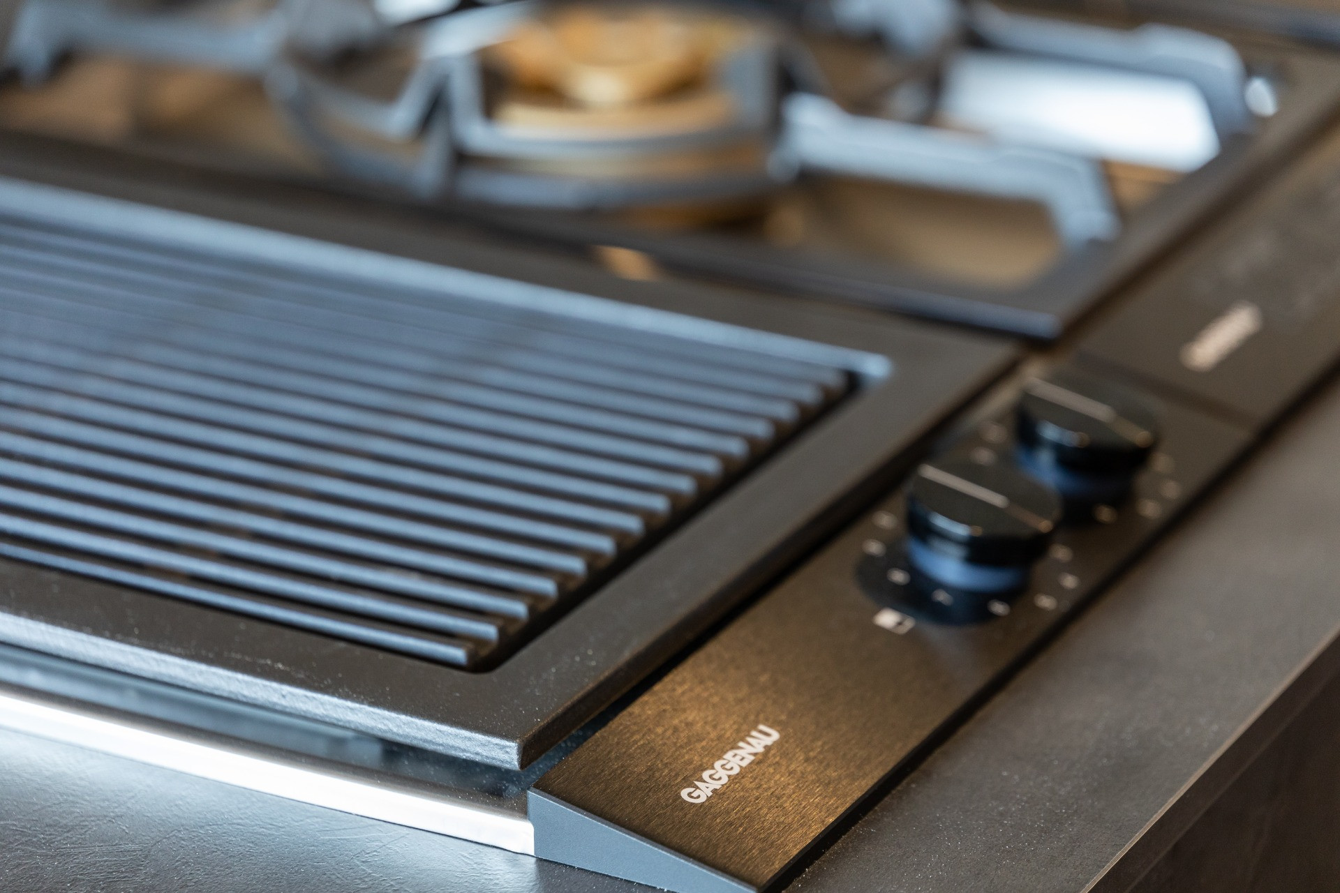 こだわりのオーダーメイドキッチンに合わせるのは、造作のダイニングカウンター。