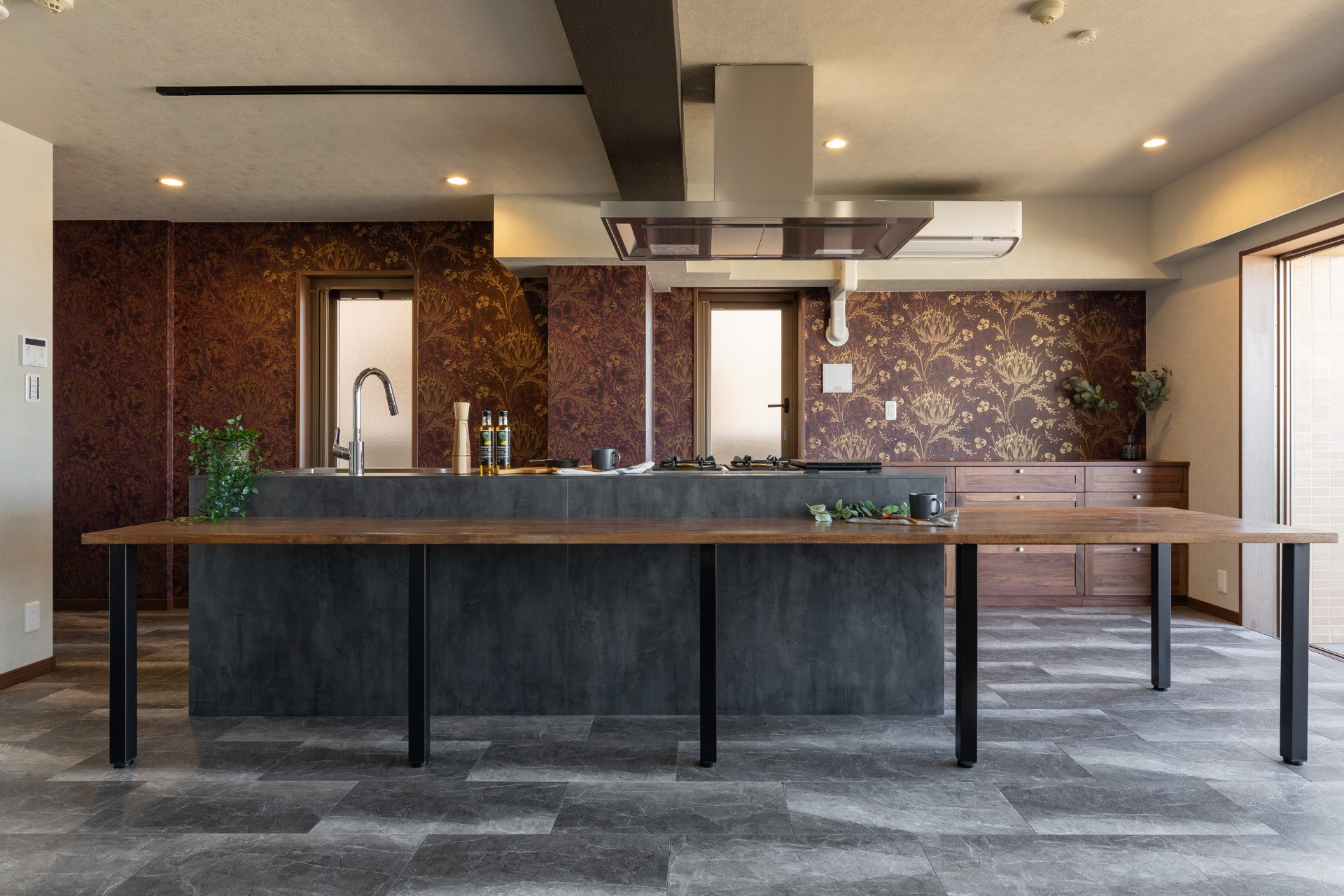 迫力のアイランドキッチン こだわりヴィンテージインテリア