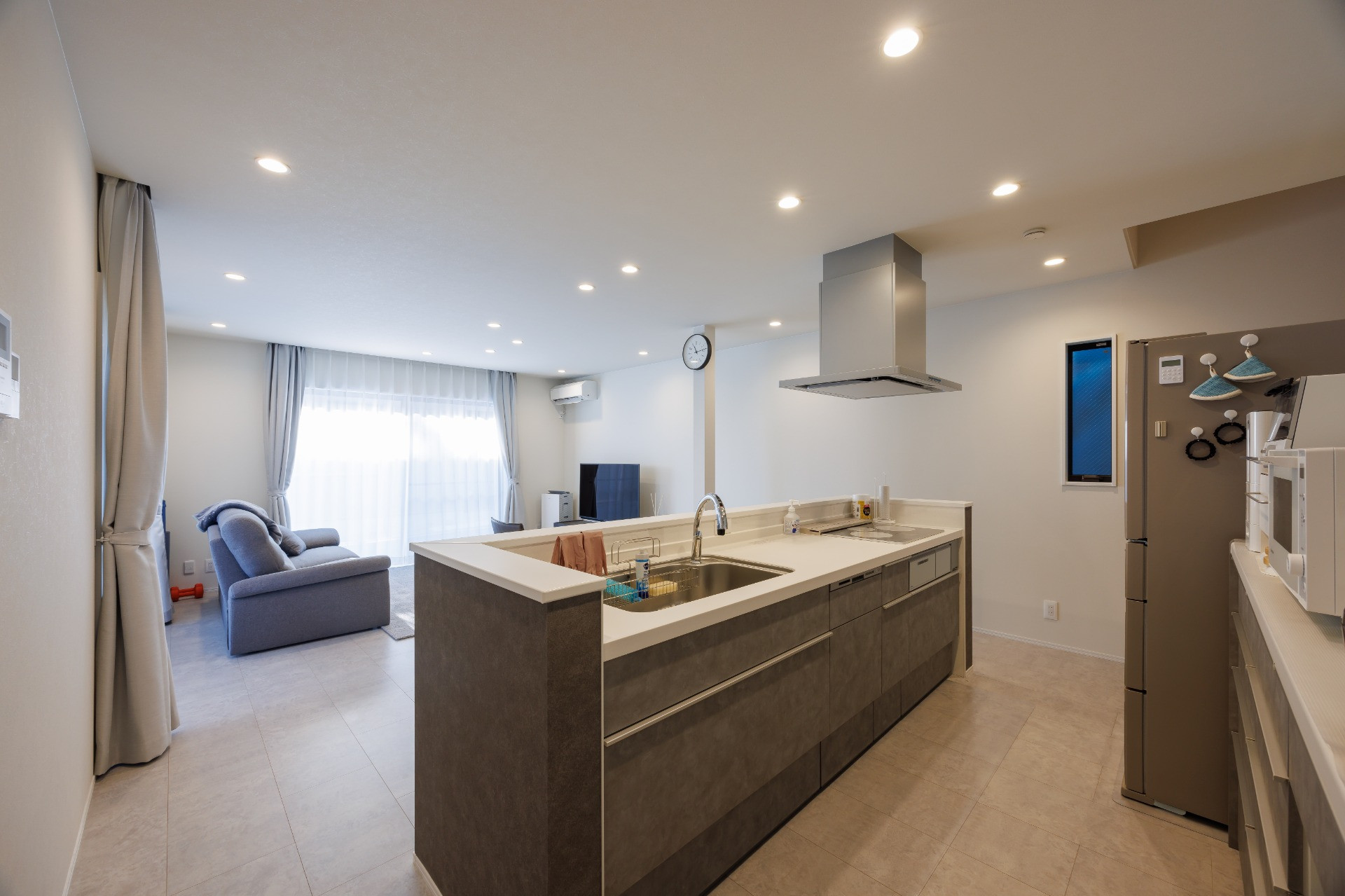 いっぽうキッチンは、調理の際に食材の色がわかりやすい、昼白色などの自然な白い光が最適です。リビングとキッチンは多くの場合同じ空間にありますが、役割に合わせてうまく照明を使い分けることで、空間にメリハリをつけるのがポイントです。