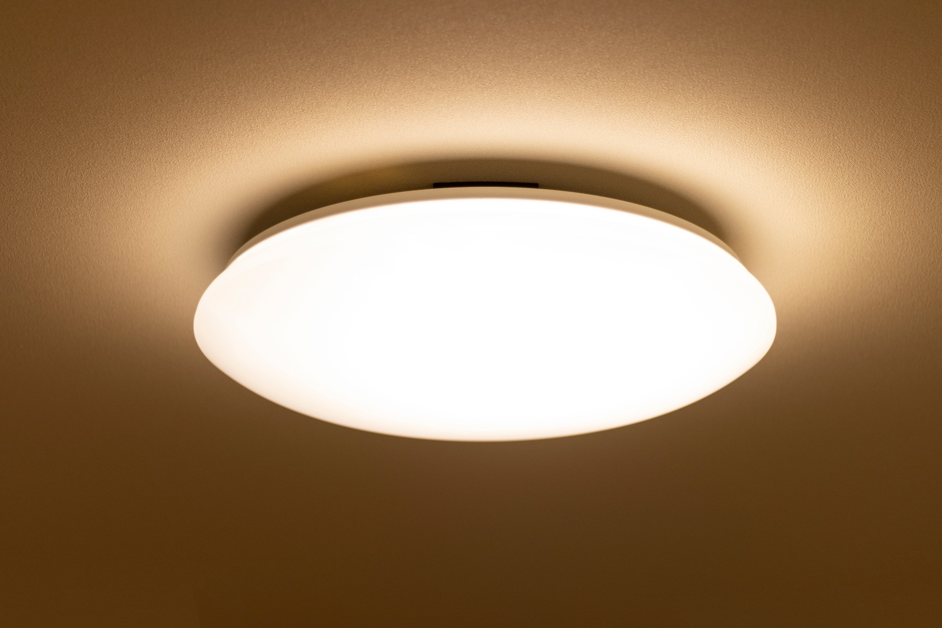 おうちの照明としておなじみのシーリングライト。天井に直に取り付けて半透明のカバーで覆うタイプの照明を一般的に指します。ダウンライトに比べて、光が柔らかく拡散してまんべんなく部屋を照らすことができます。見た目もそれほど主張がなく、ダウンライトに次いで部屋をスッキリと見せることができます。