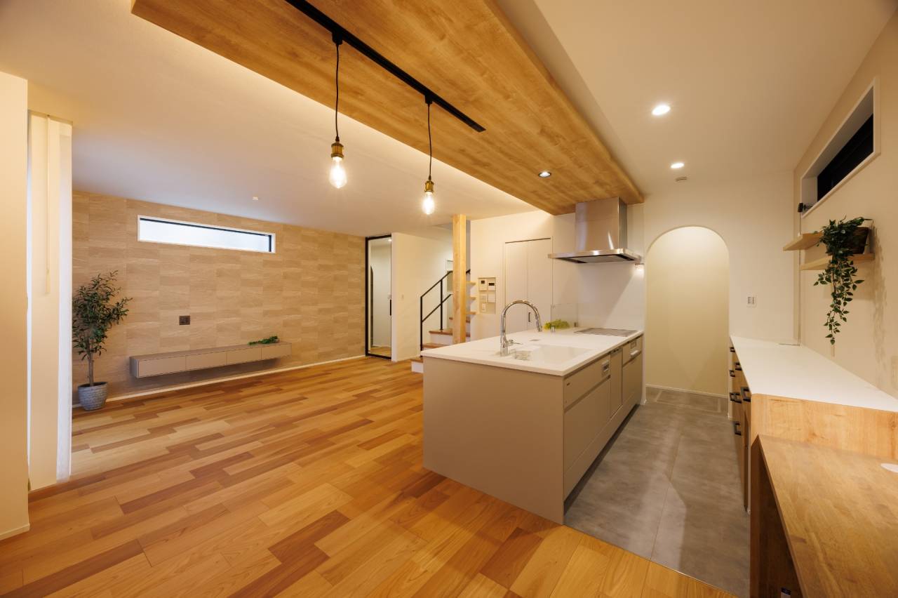 ダウンライトやペンダントライトなど、パースでは照明を反映できていないのでオレンジっぽく感じますが、パースとほぼ相違ない仕上がりです♪♪