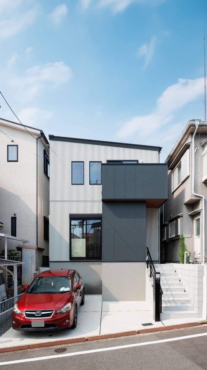防犯性に優れた横向き玄関や、上質感を演出するアクセントの外壁で、シンプルモダンな外観に仕上がりました🫶街馴染みも美しく、赤の車が映えます🤩