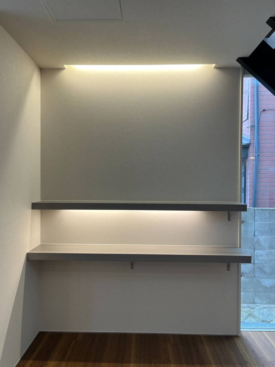 建築化照明とは、天井や壁に照明を仕込み、光源を目立たせず空間に溶け込ませる照明手法です。壁や天井を照らすことで、やさしく心地よい明かりになり、空間の雰囲気がぐっと良くなります。また、壁紙やタイル、天井の質感をきれいに見せられるのも大きな魅力です💡