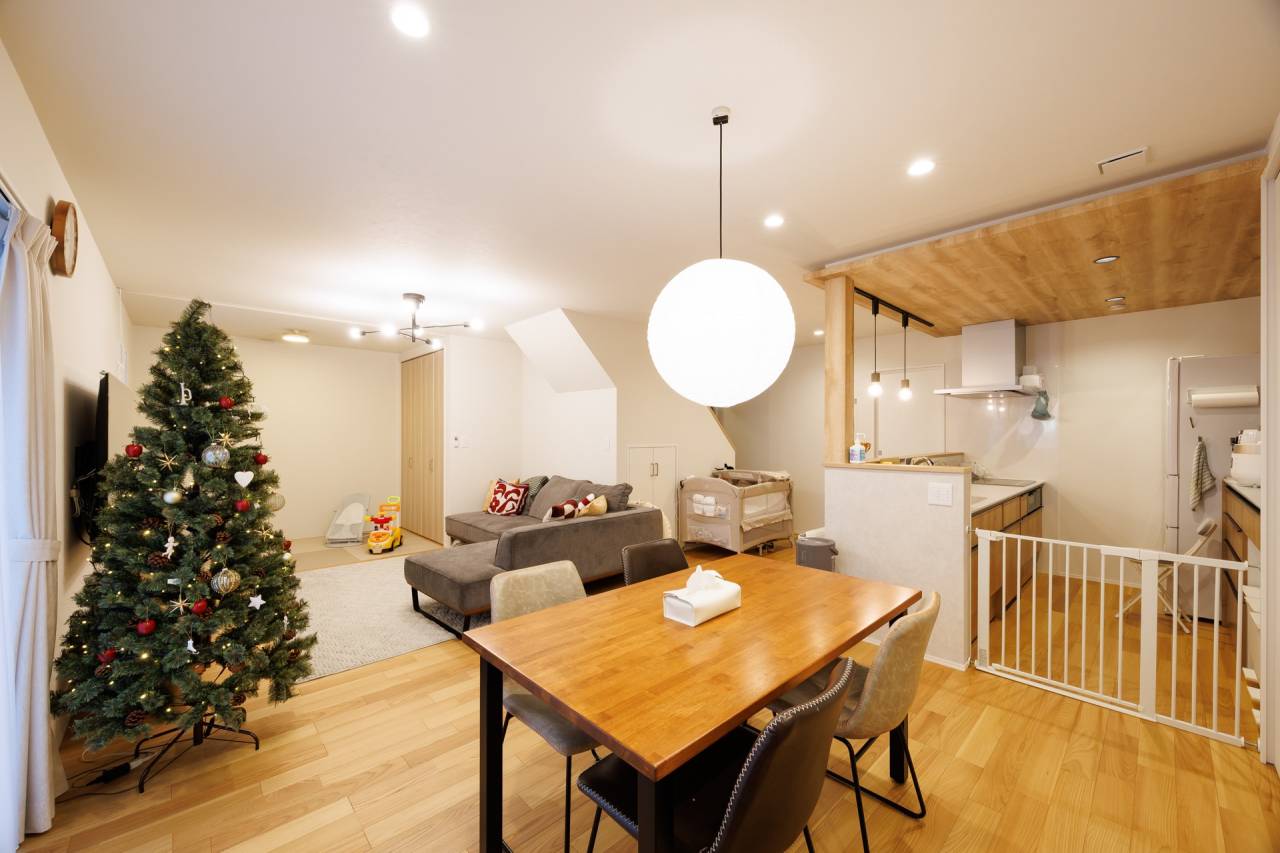 完成した家は、私たちのイメージ通りでした!4LDKの間取りが叶い、こだわった広いリビングと、家事が楽になるランドリールームは、私たちが欲しかった動線が形になり嬉しいです。ナチュラル系で統一したデザインも、細部まで可愛く仕上げていただき、どこを見渡してもお気に入りばかり。実際に住んでみて『1階にもう少し窓を作ればよかったかな』と感じる部分はありますが、そんなリアルな気づきも含めて、自分たちらしい納得の家づくりができたと満足しています。